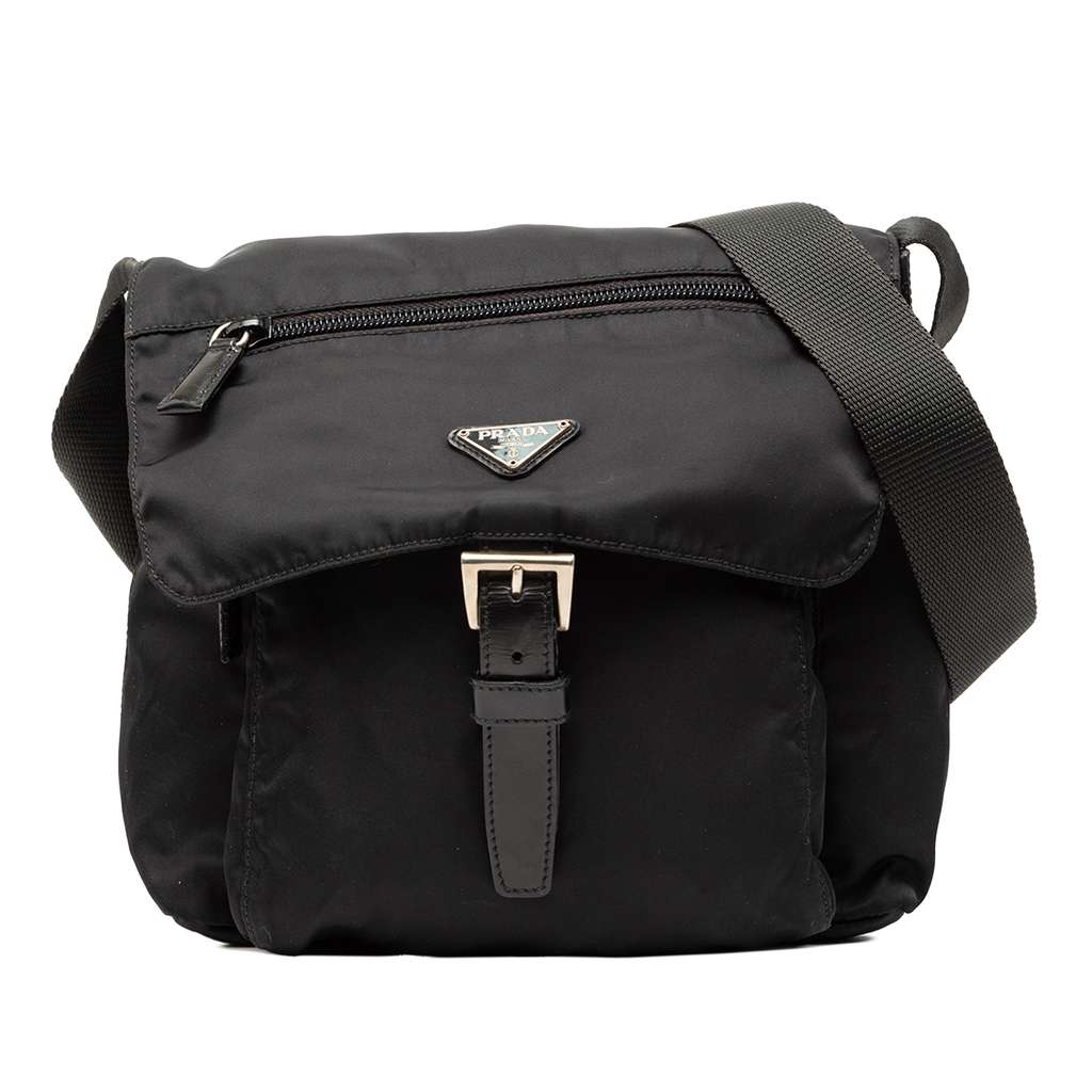 Prada Tessuto Zip Buckle Messenger Bag Black Mini | Pre-Love