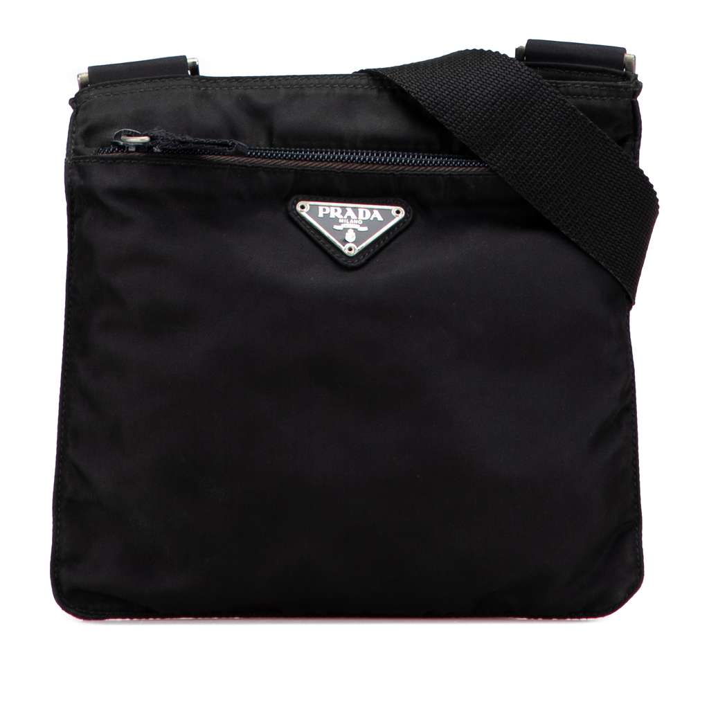 The Tessuto crossbody bag features a nylon body, an adjustable flat shoulder strap, a top zip closure, exterior zip pocket, and an interior zip pocket.