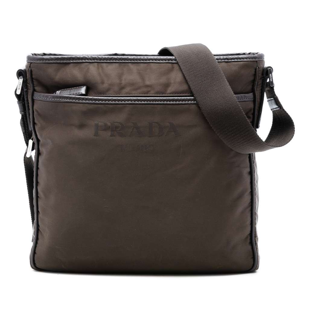 Prada Tessuto Zip Top Crossbody Brown Medium | Pre-Loved Lux