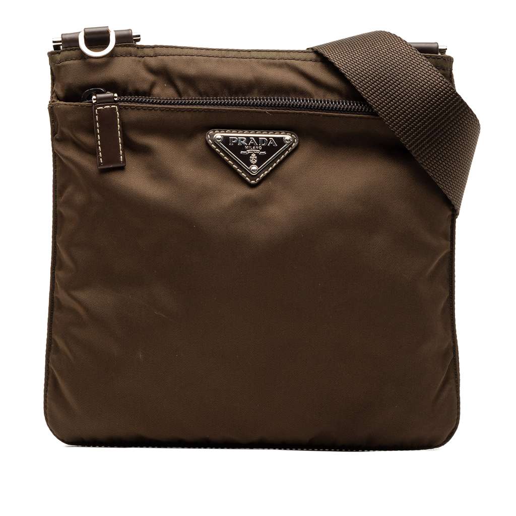 Prada Tessuto Zip Top Crossbody Brown Small | Pre-Loved Luxu