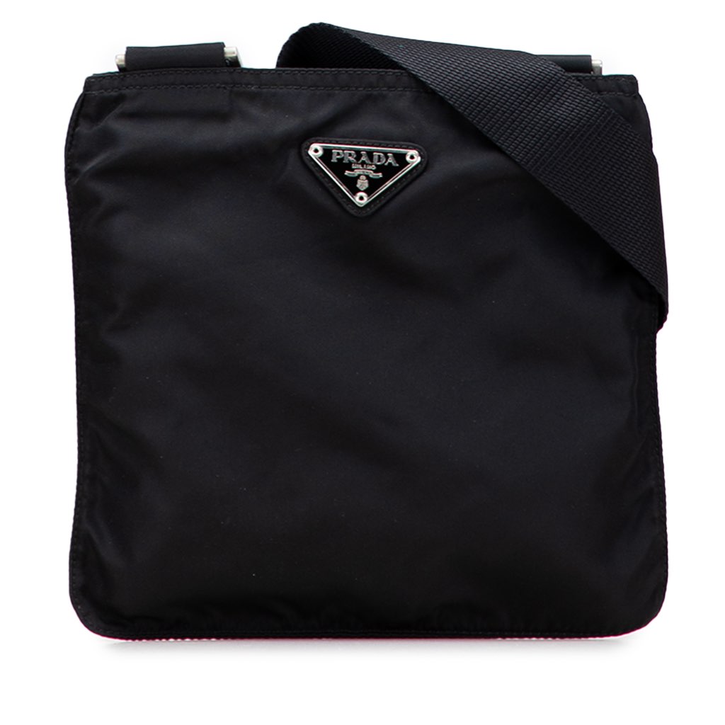 This crossbody bag features a nylon body, a flat shoulder strap, and a top zip closure.