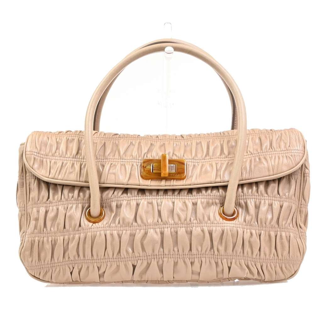 Prada Turnlock Shoulder Bag Beige Large Leather | Pre-Loved