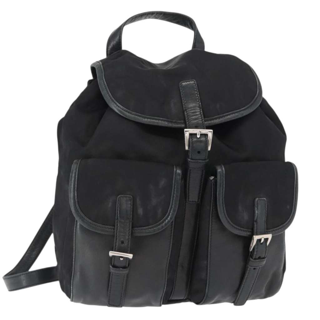Prada Vela Double Front Pocket Backpack Black Small