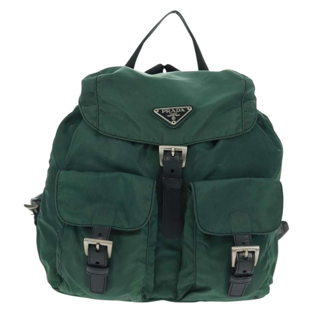 Prada Vela Double Front Pocket Backpack Green Small