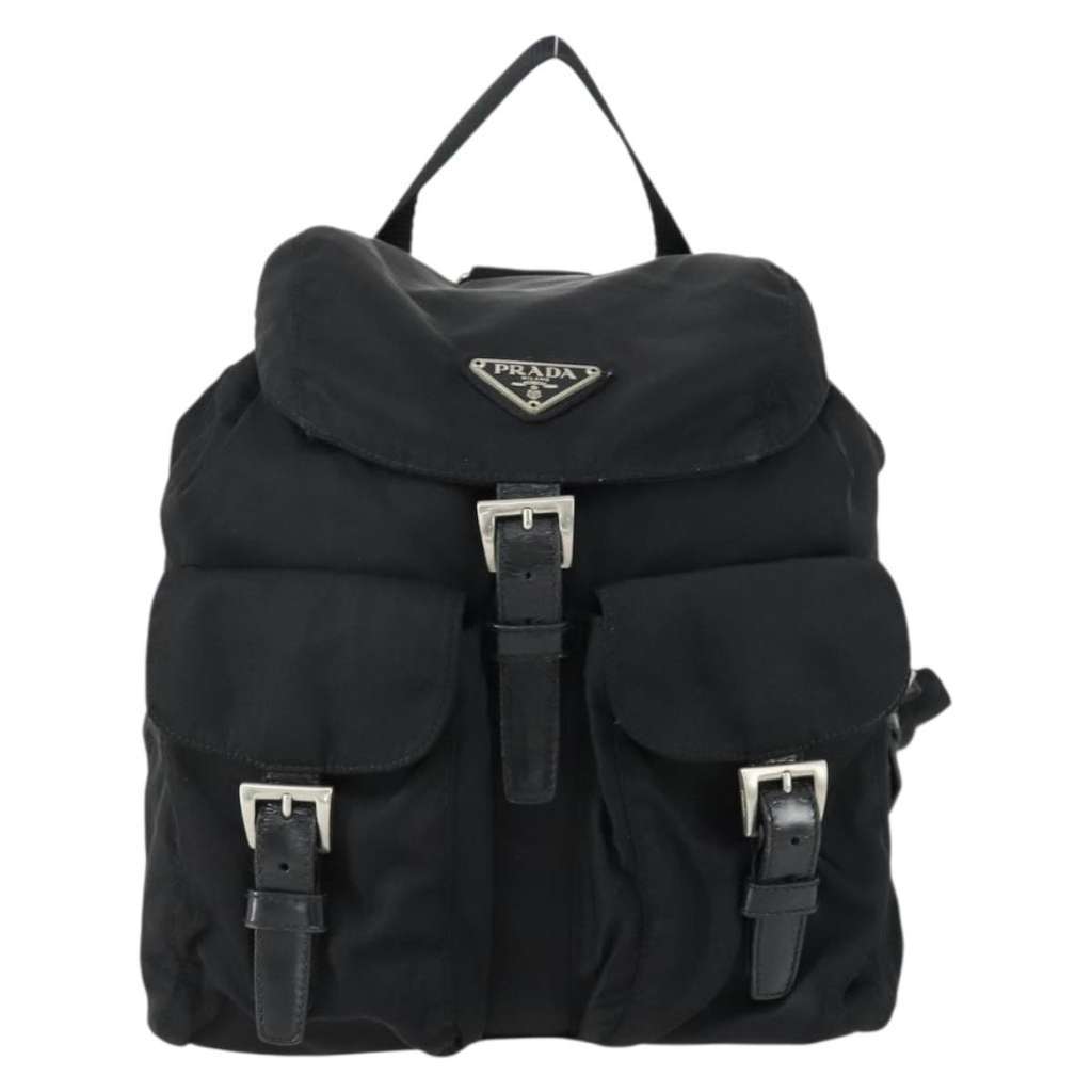 Prada Vela Double Front Pocket Backpack Black Small