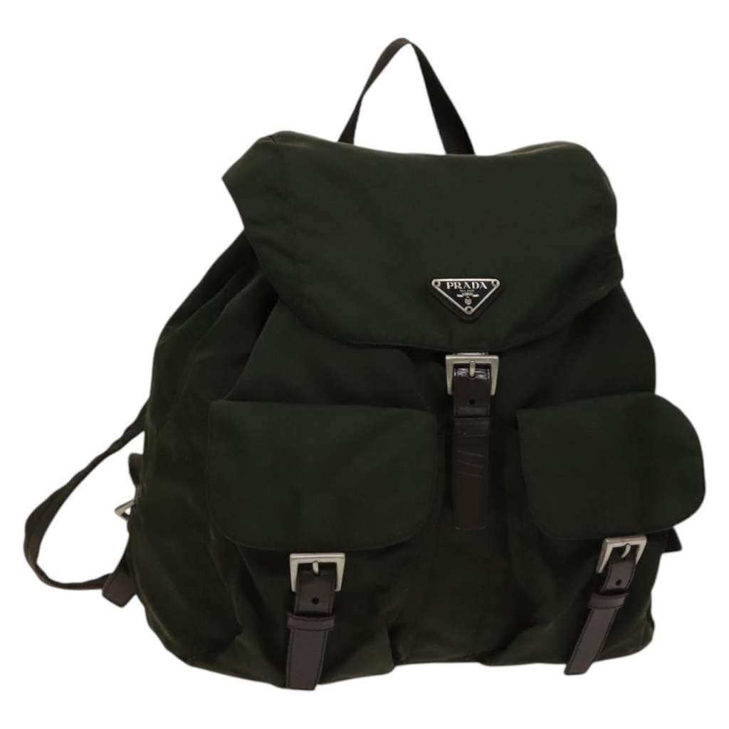 Prada Vela Double Front Pocket Backpack Khaki Large