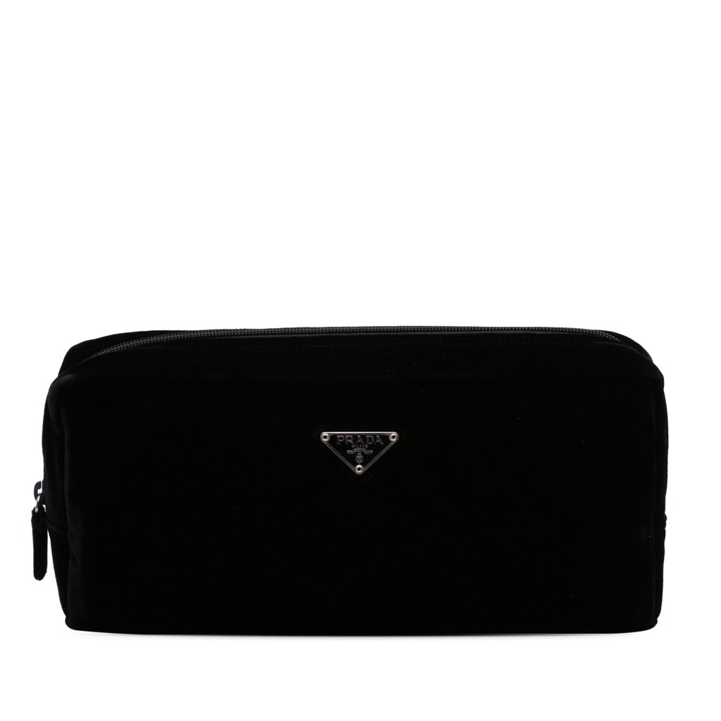This clutch bag features a velvet body, and a top zip closure.