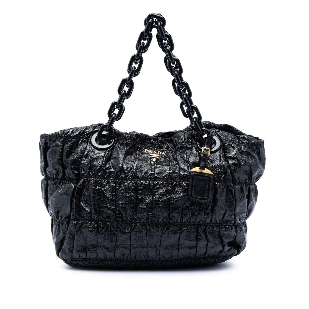 Prada Vernice Gaufre Resin Chain Shopping Tote Black Large L