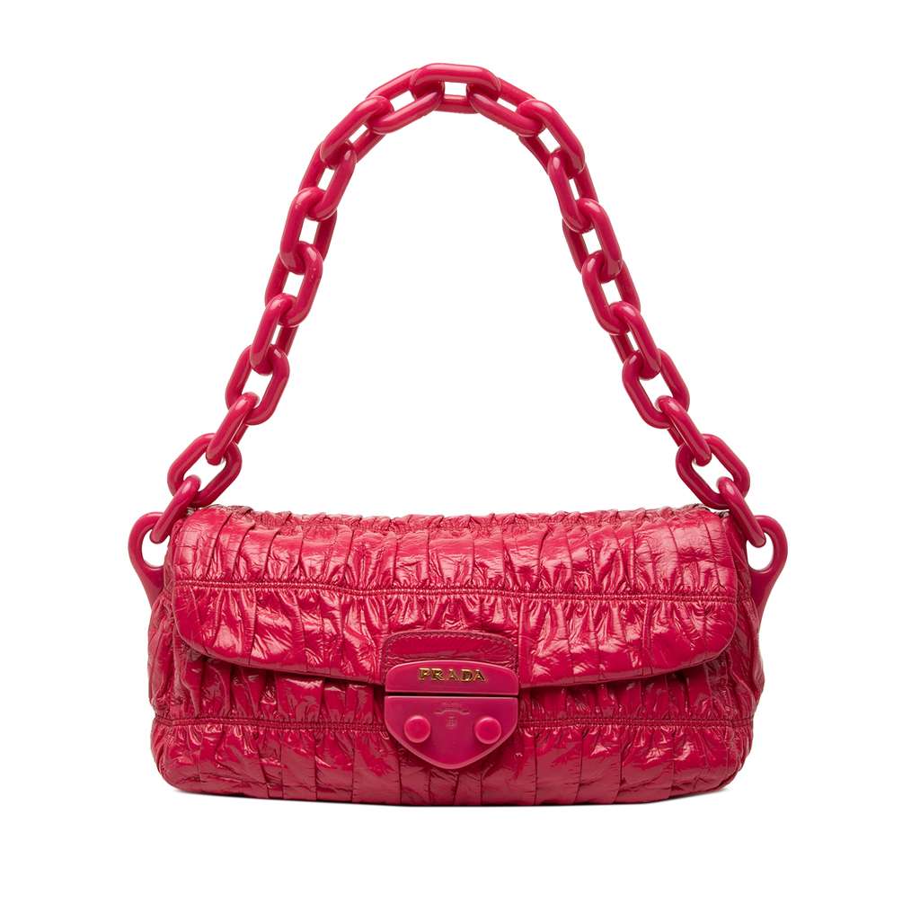 Prada Vernice Gaufre Shoulder Bag Pink Large Leather
