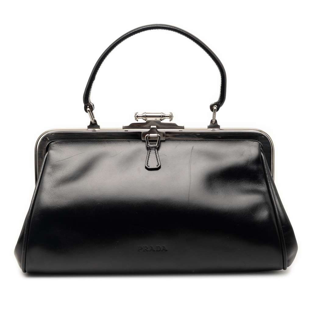 Prada Vitello Cernier Doctors Frame Bag Black Medium Leather