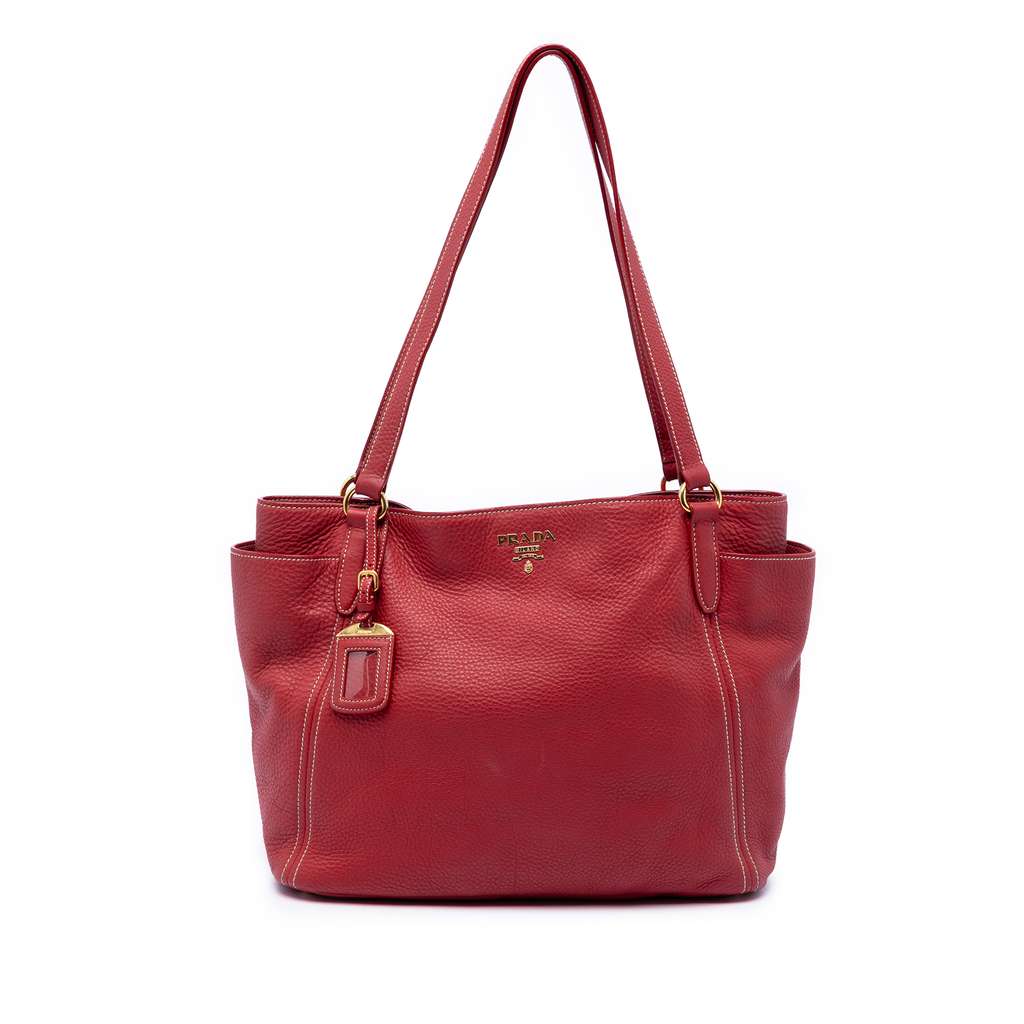 Prada VItello Daino Double Pocket Tote Red Large Leather