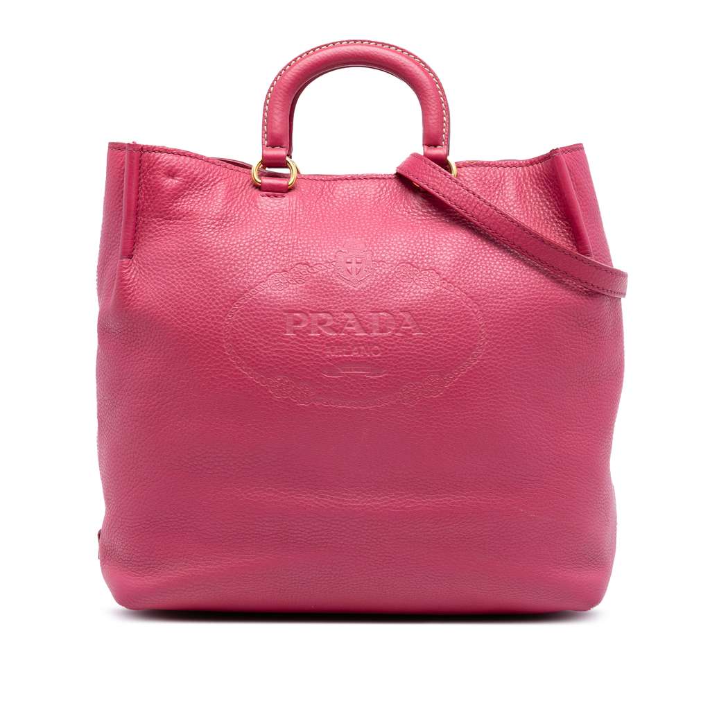 Prada Vitello Daino Embossed Canapa Logo Open Convertible To
