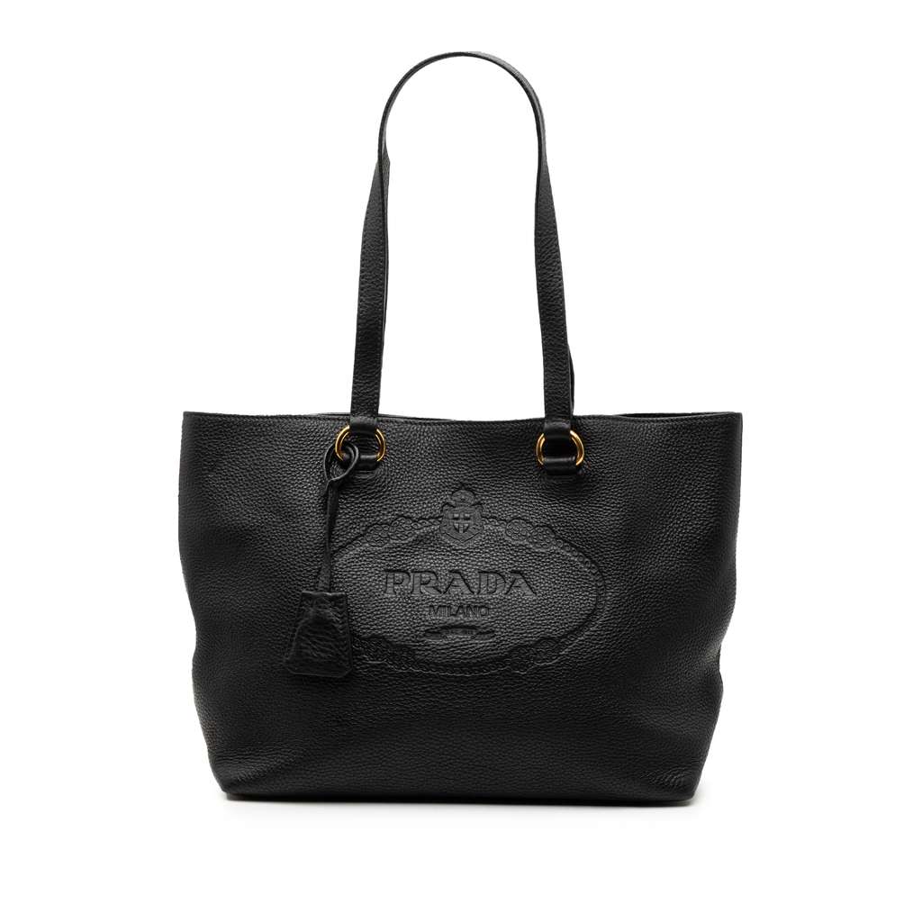 Prada Vitello Daino Embossed Logo Tote Black Large Leather