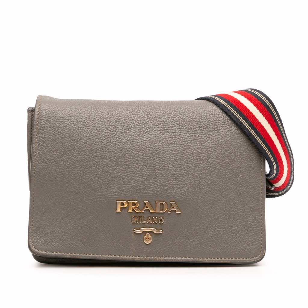 This crossbody bag features a leather body, an adjustable flat leather strap, a canvas shoulder strap, a top flap with a magnetic snap closure, and interior zip and slip pockets.
