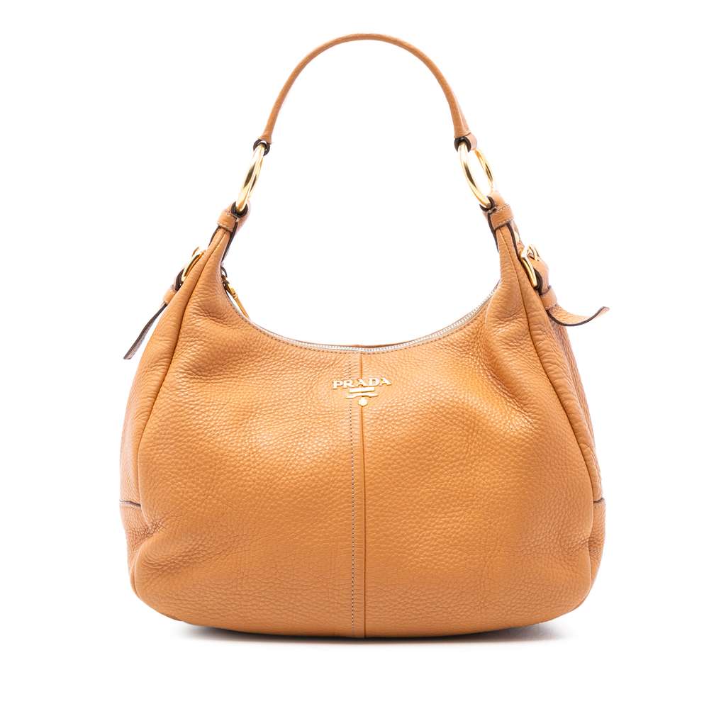 This hobo bag features a leather body, a flat strap, a top zip closure, and interior zip and slip pockets.