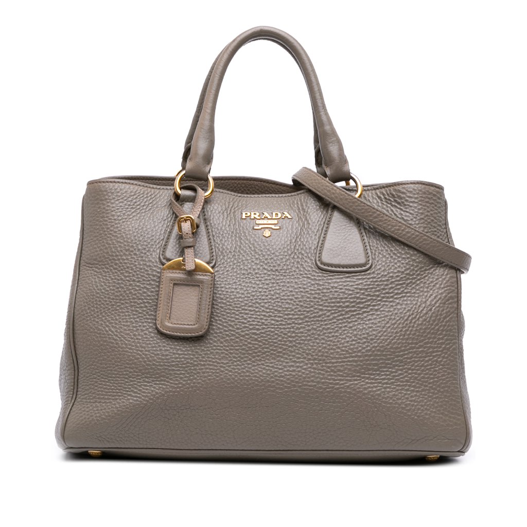 This satchel features a leather body, rolled leather handles, a detachable flat strap, an open top with side snap button closures, an interior center zip compartment, and interior zip and slip pockets. Exterior bottom has been repainted.
