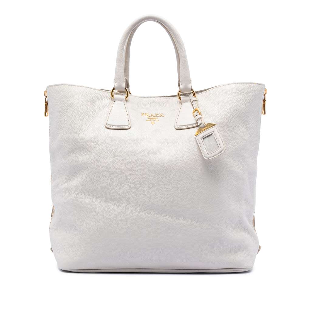 Prada Vitello Daino Side Zip Open Convertible Tote White X-L