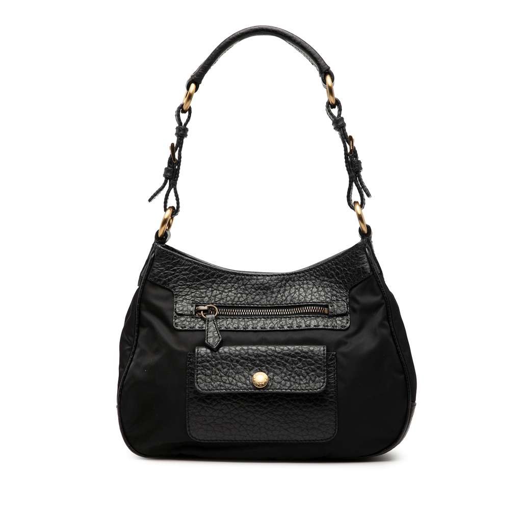 Prada Vitello Daino Trimmed Tessuto Shoulder Bag Black Mediu