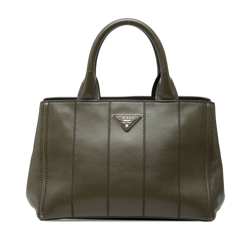 Prada Vitello Daino Vertical Stitched Top Handle Bag Green M