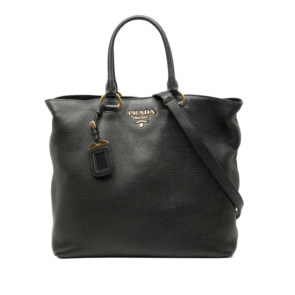 Prada Vitello Phenix Open Convertible Tote Black Large Leath