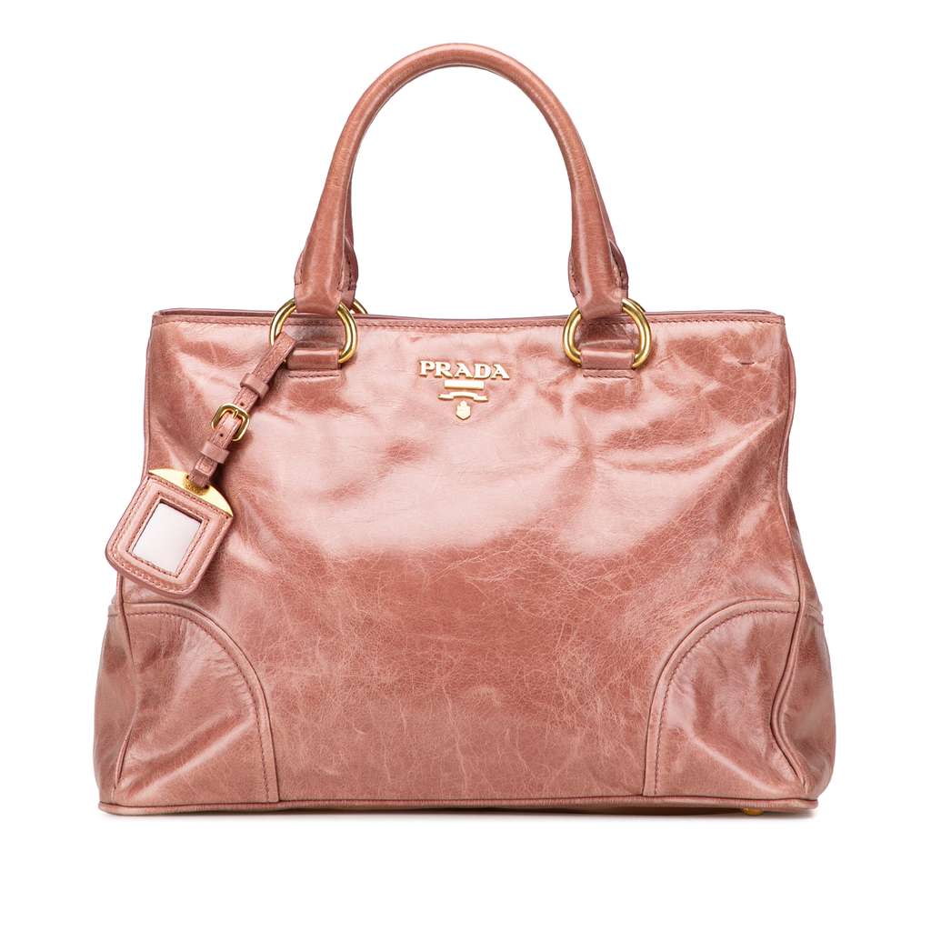 This satchel features a leather body, rolled leather top handles, an open top with magnetic snap closure, and interior zip and slip pockets.