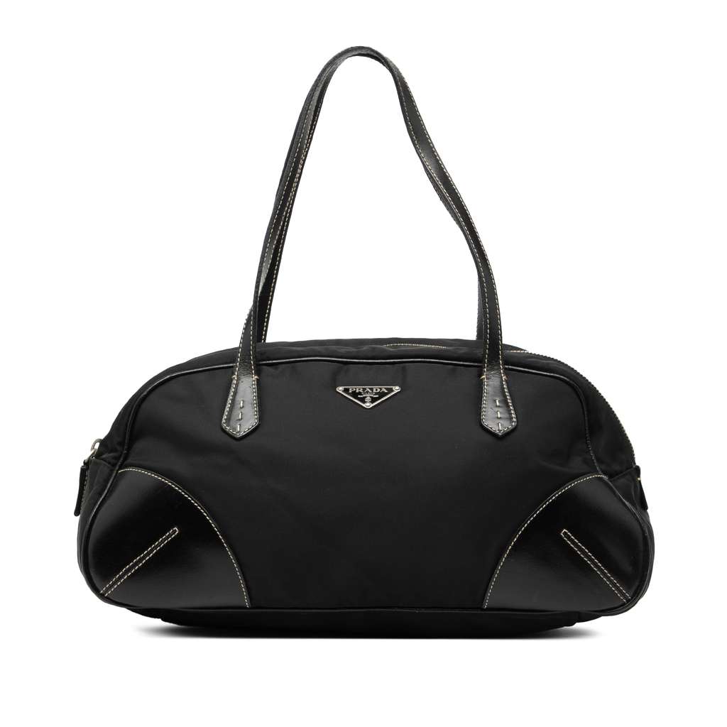Prada Vitello Trimmed Tessuto Handbag Black Large | Pre-Love