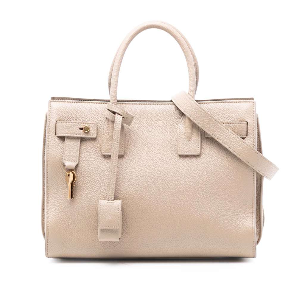 The Sac de Jour features a leather body, rolled leather handles, an adjustable and detachable strap, an open top, an interior zip compartment, and an interior zip pocket.