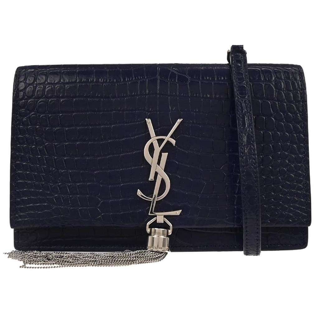 Saint Laurent Classic Monogram Tassel Chain Wallet Blue Mini