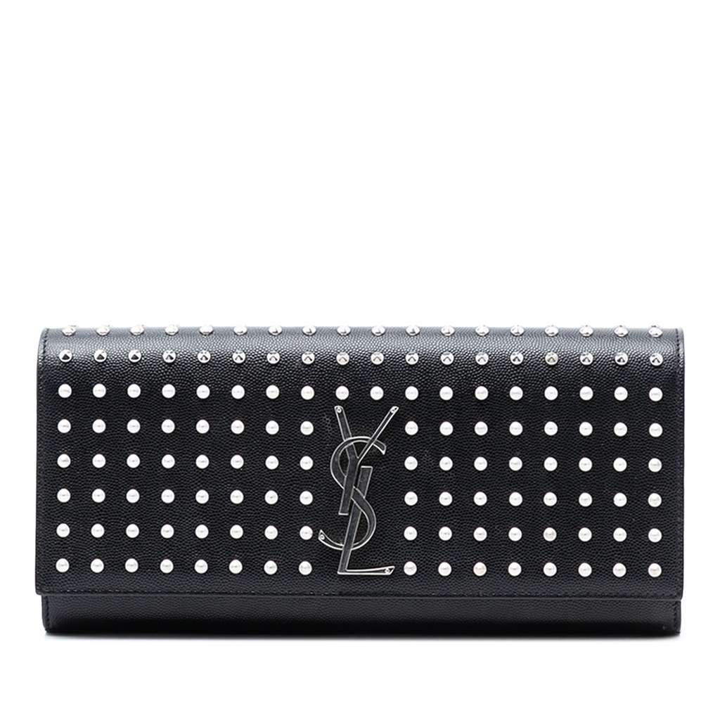 Saint Laurent Grain De Poudre Classic Monogram Studded Clutc