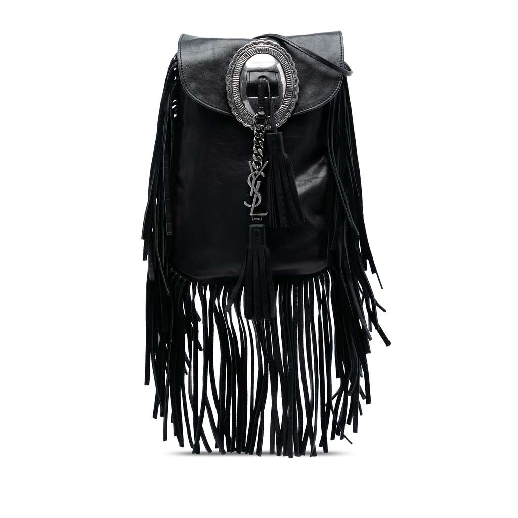 Saint Laurent Leather Anita Fringed Crossbody Black Mini Lea