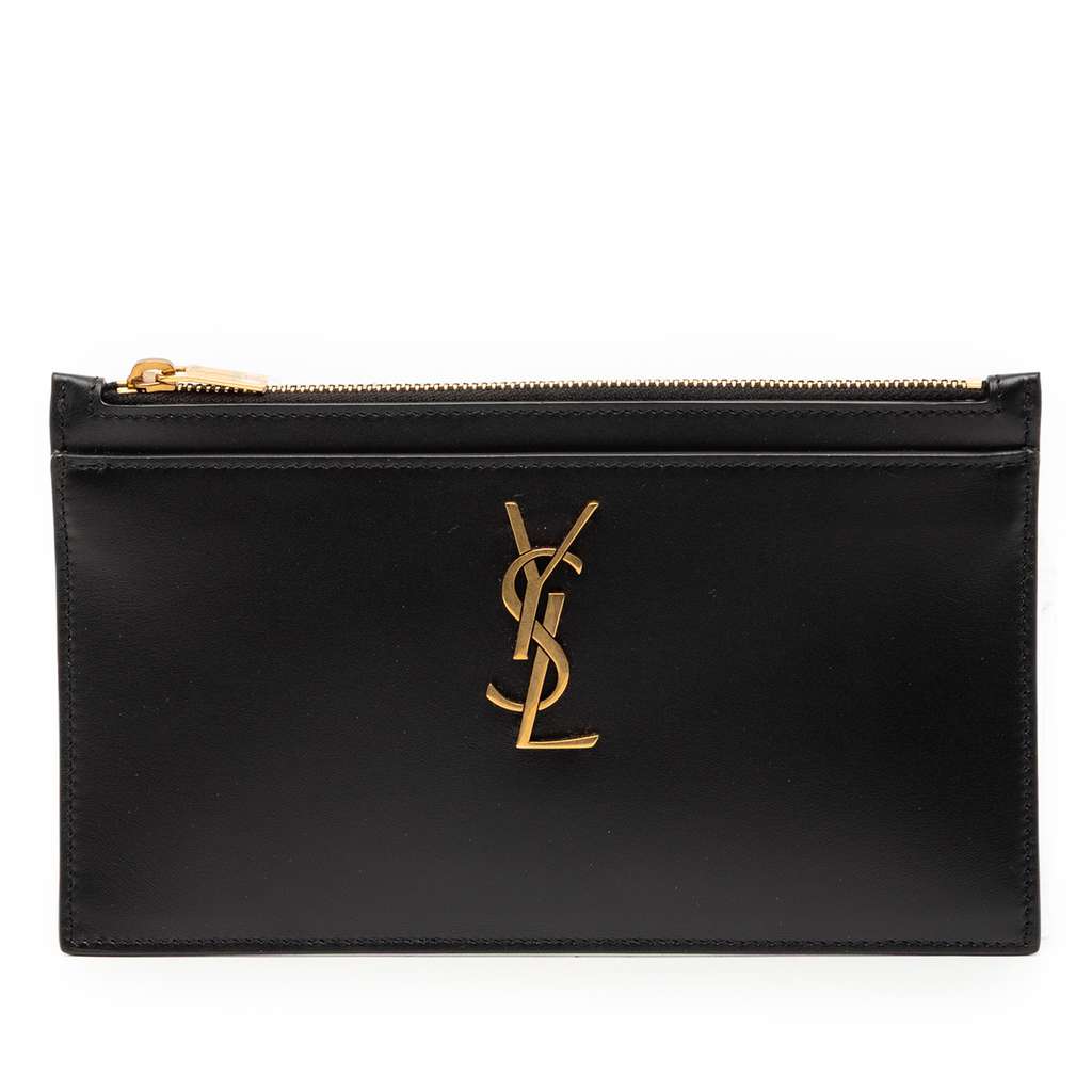 Saint Laurent Leather Monogram Bill Pouch Black Small Leathe