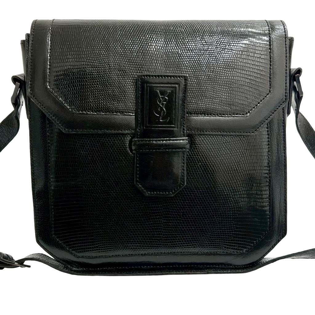 This crossbody bag features an embossed leather body, an adjustable flat strap, a front flap with slide through tab closure, and an interior slip pocket.