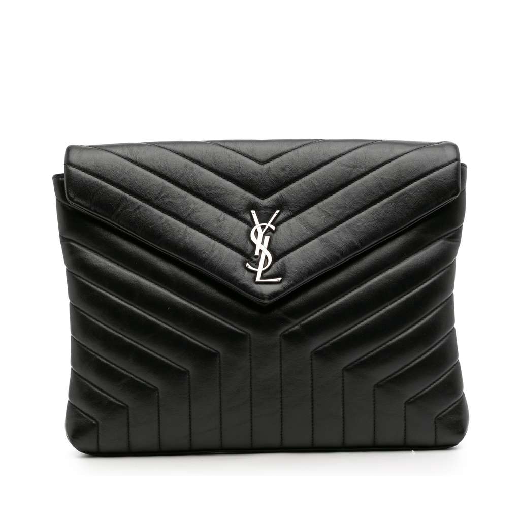 The LouLou clutch features a quilted leather body, and a front flap with magnetic snap button closure.