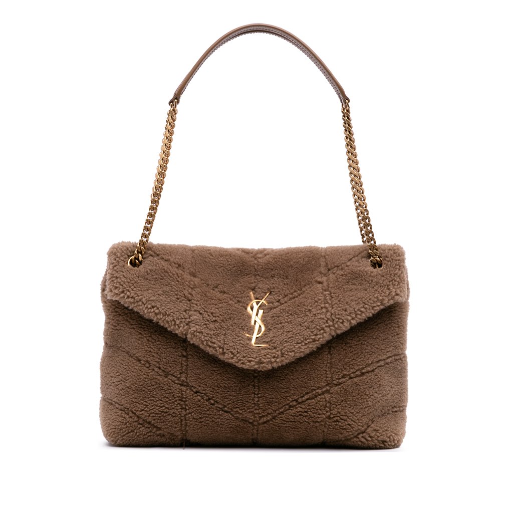 The LouLou shoulder bag features a shealing body, curb chain shoulder straps with leather guard, a flap with magnetic snap closure, and an interior zip pocket.