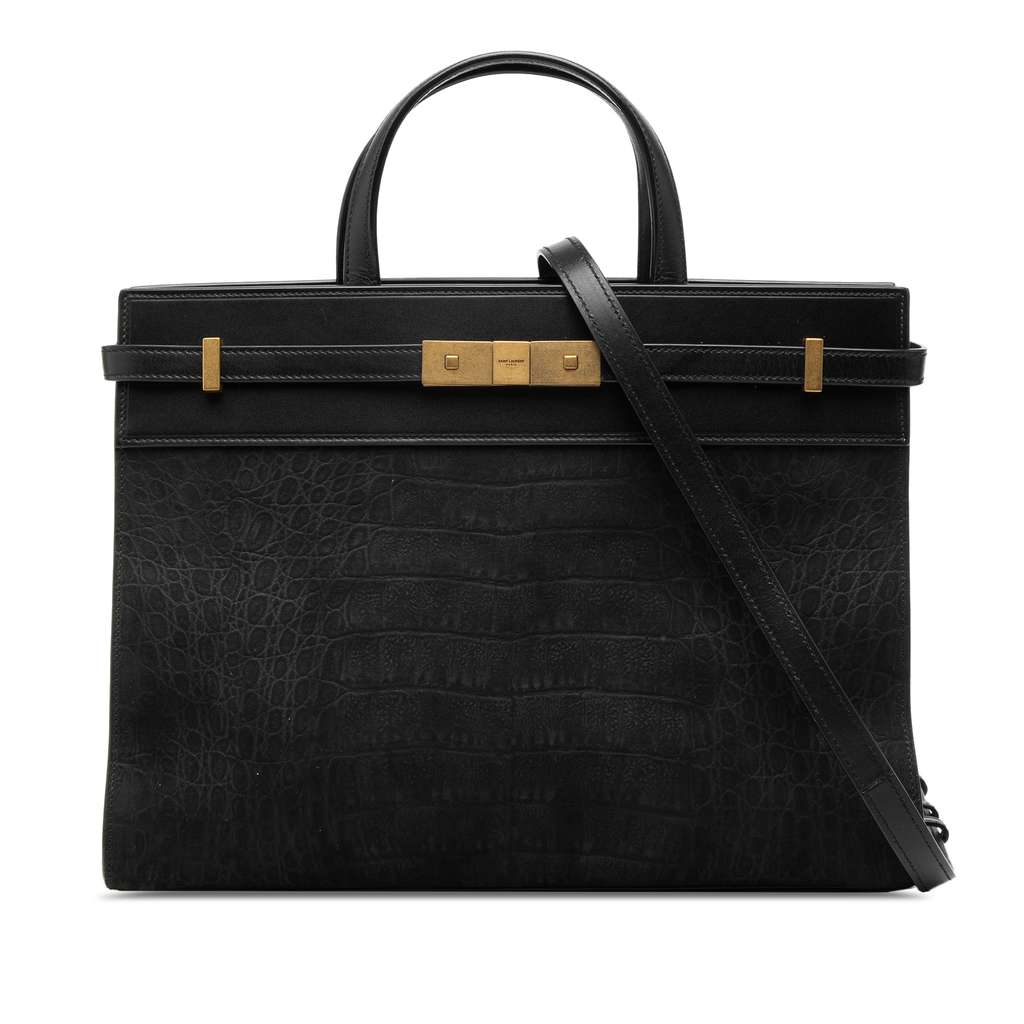 Saint Laurent Small Leather Croc Embossed Manhattan Satchel