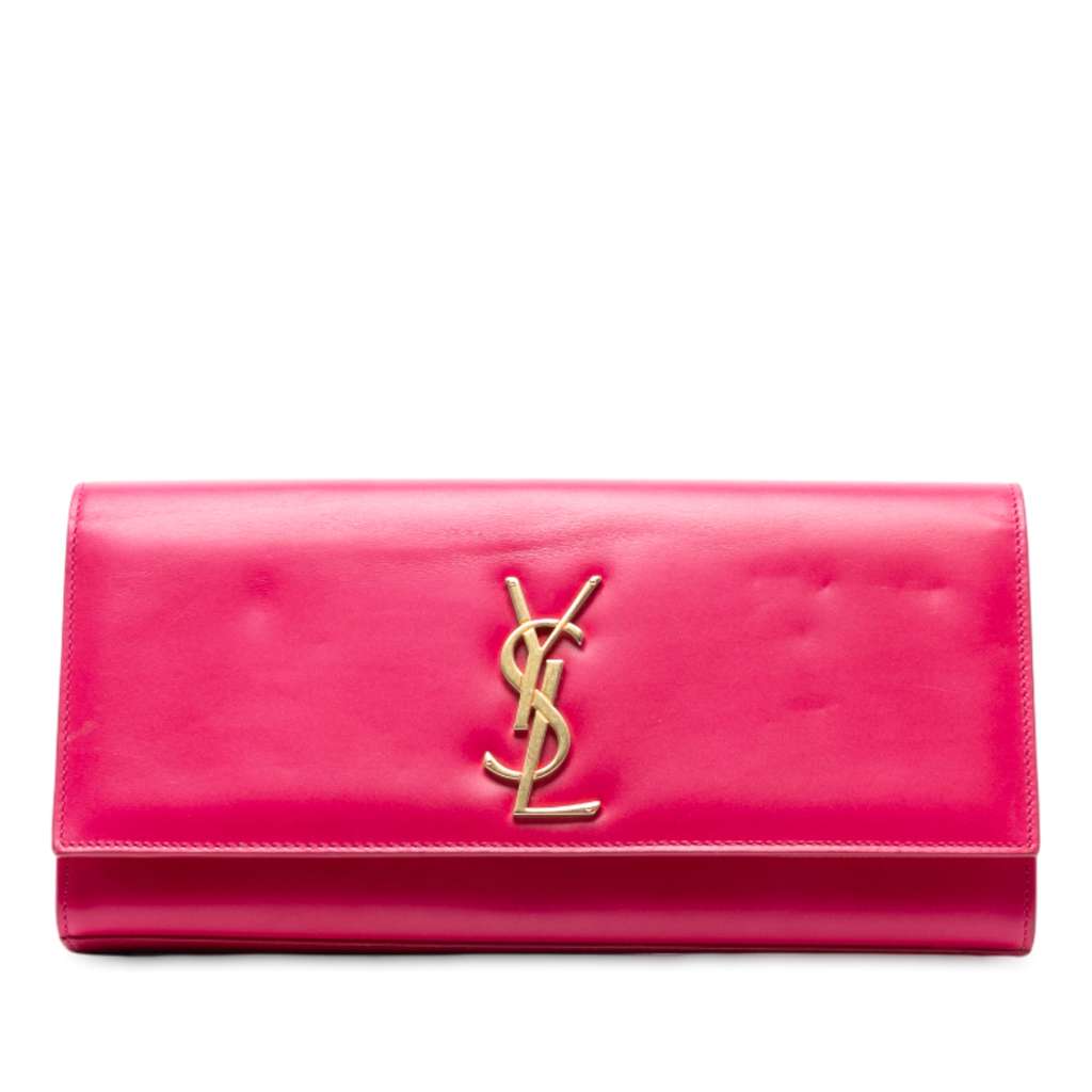 The Monogram Cassandre clutch bag features a leather body, a front flap with magnetic closure, and an interior slip pocket.