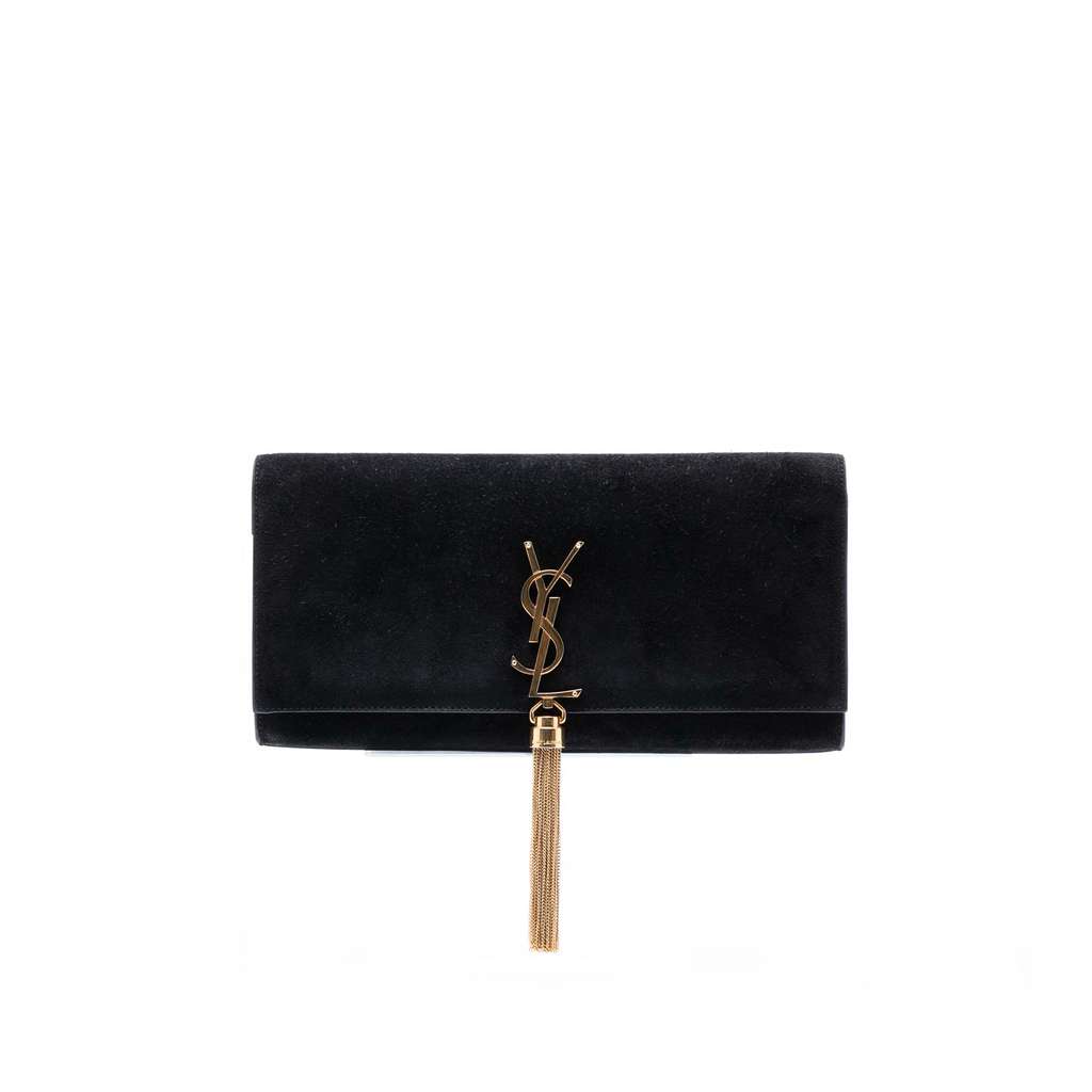 Saint Laurent Suede Monogram Kate Tassel Clutch Black Medium