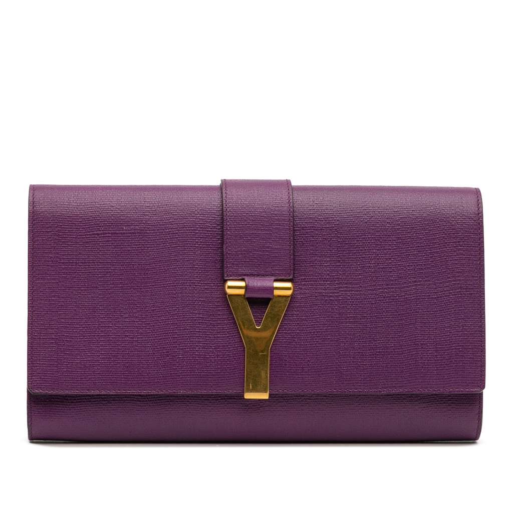 The Chyc Ligne Clutch features a leather body, a front flap with gold-tone Y hardware, and an interior slip pocket.