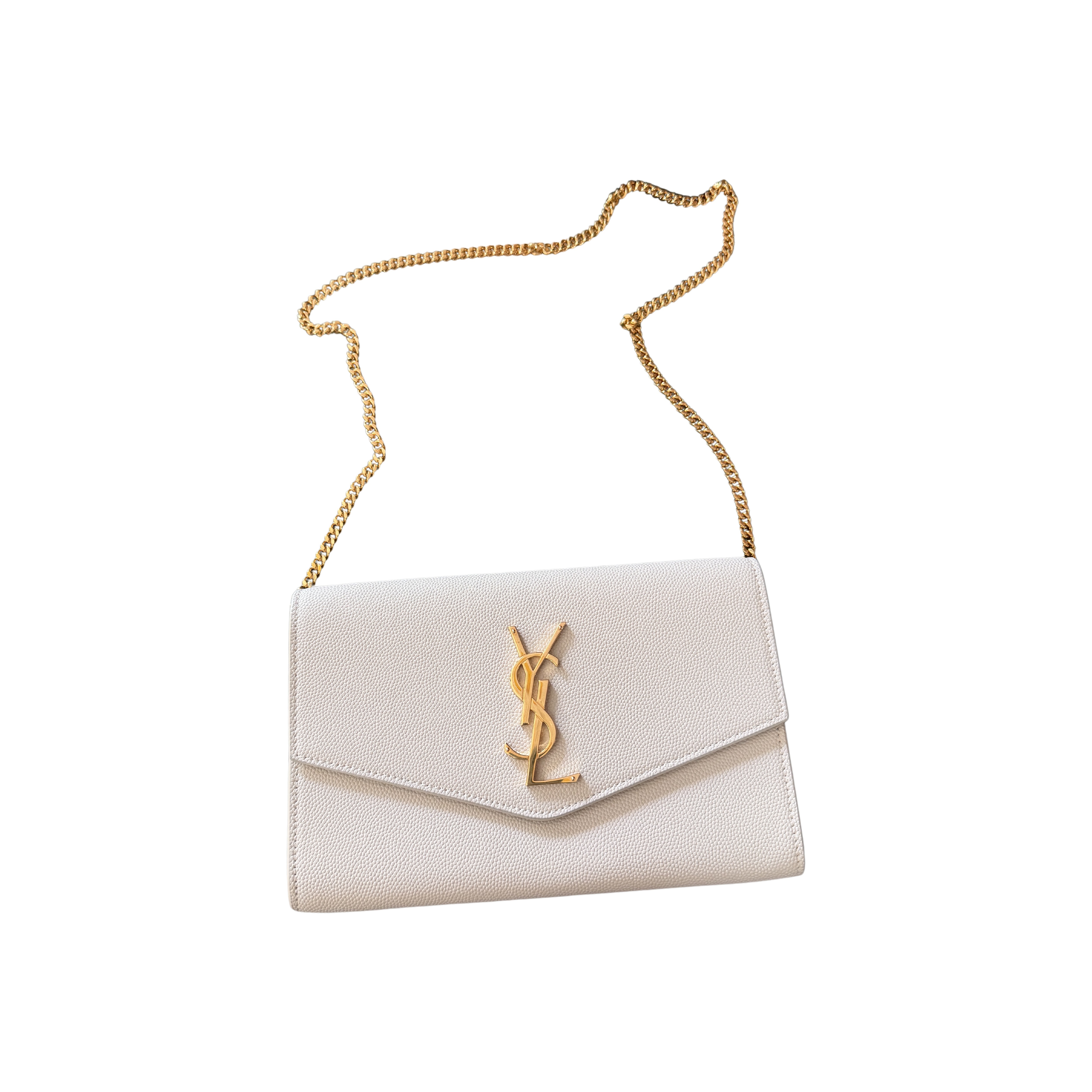 Saint Laurent Uptown Chain Waller Bag White Mini Leather