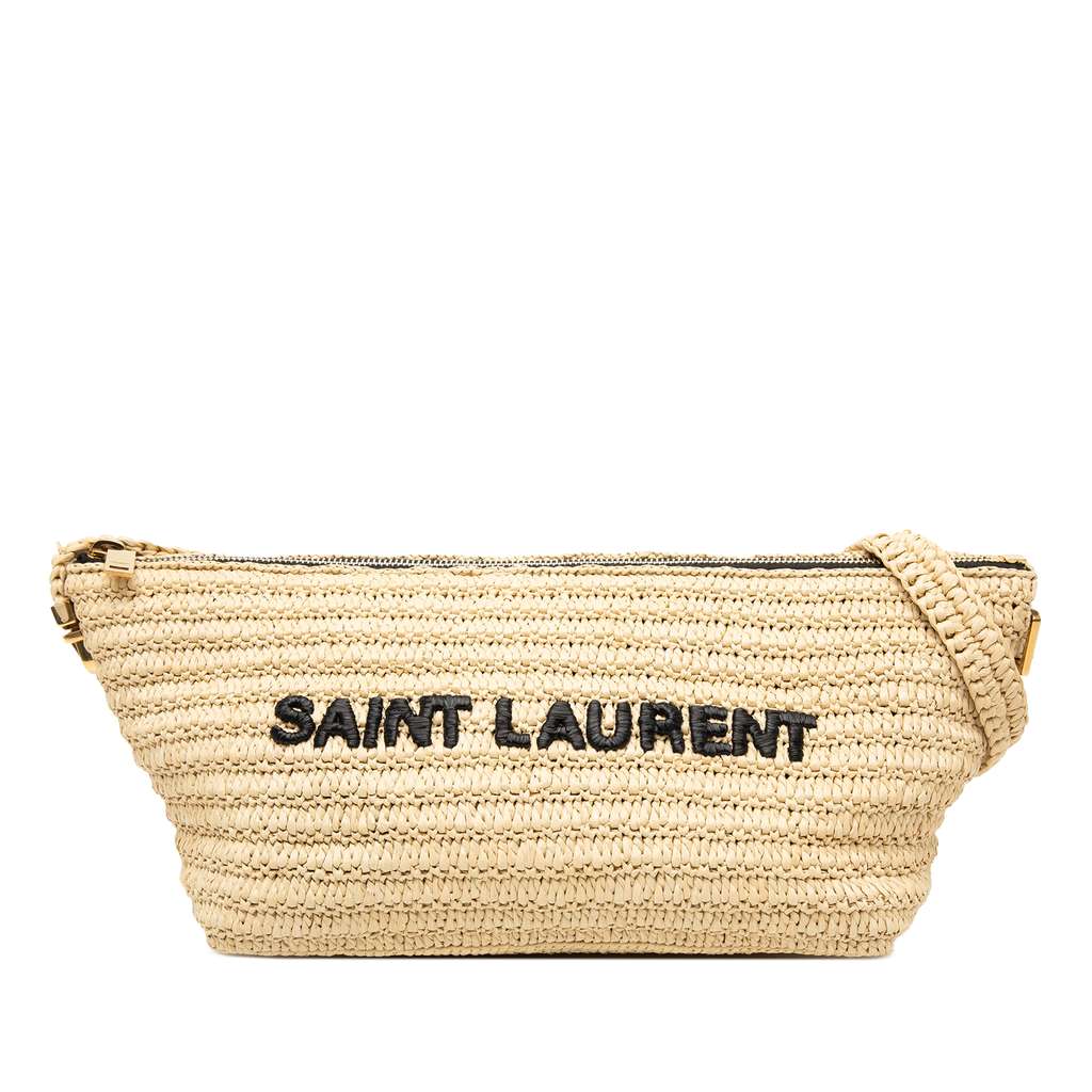 Saint Laurent Woven Raffia Le Tuc Logo Shoulder Bag Beige Sm