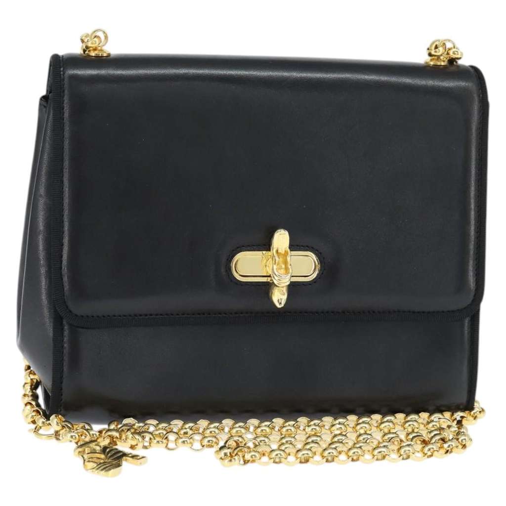 Salvatore Ferragamo Chain Flap Shoulder Bag Black Small Leat