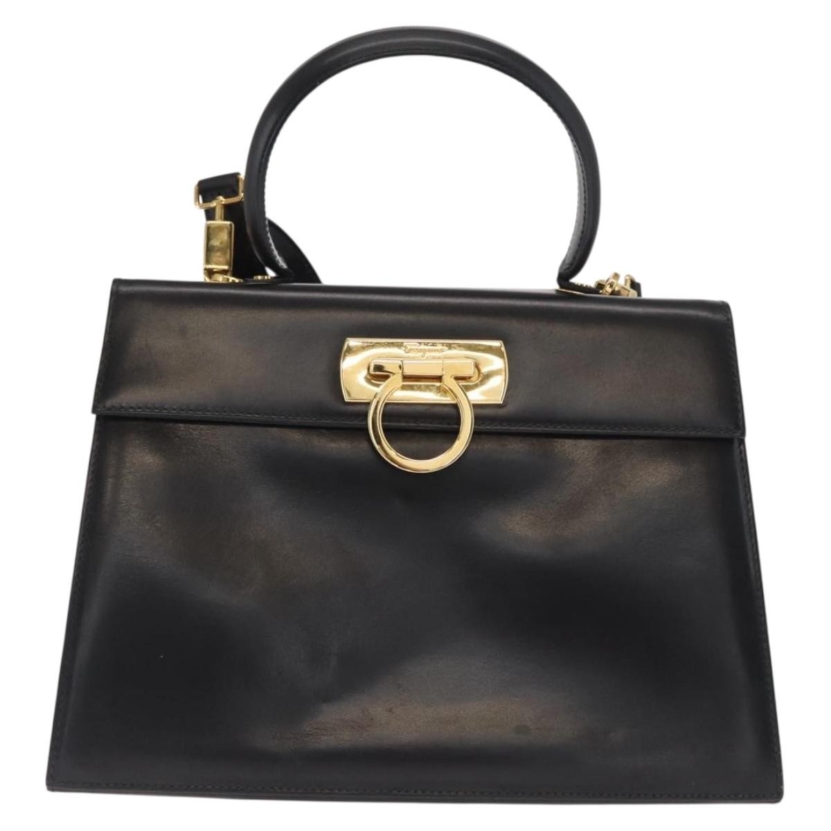 Salvatore Ferragamo Convertible Top Handle Bag Black Medium
