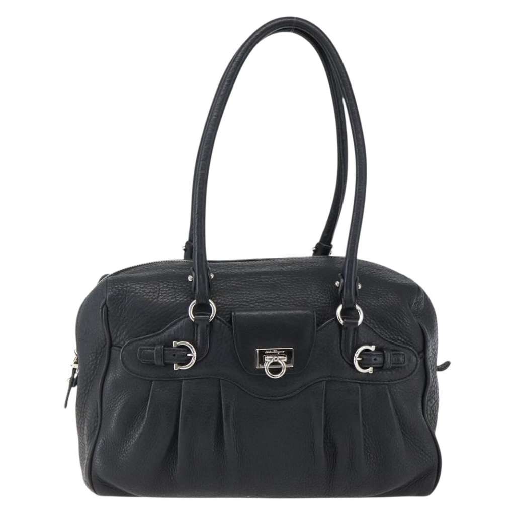 Salvatore Ferragamo Gancini Buckle Shoulder Bag Black Large