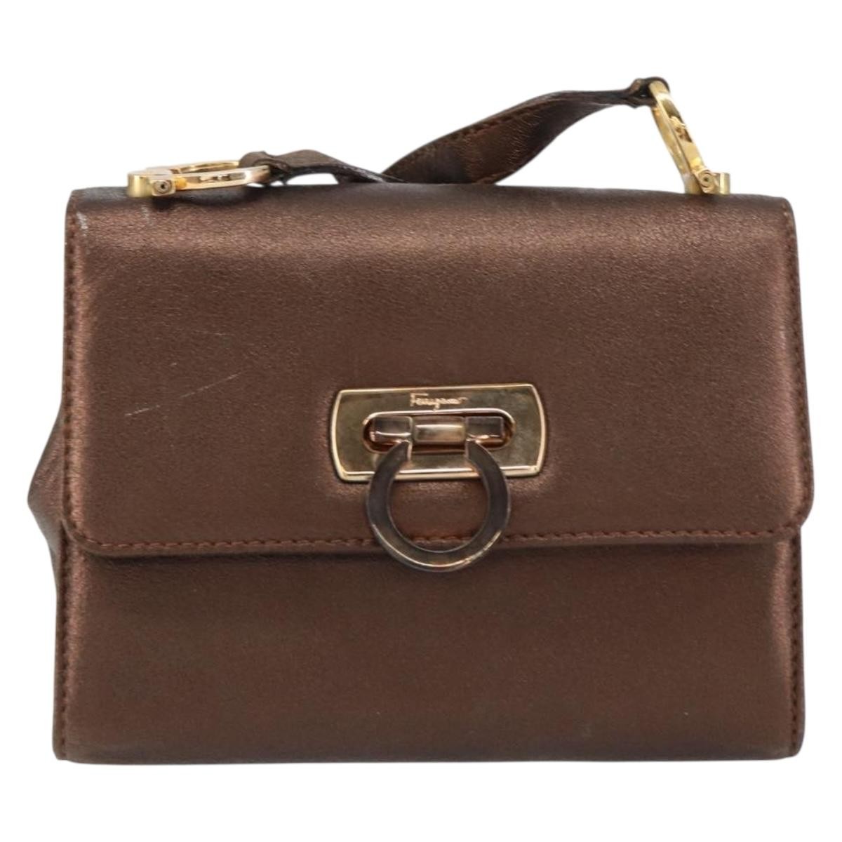 Salvatore Ferragamo Gancini Shoulder Bag Gold Mini Leather