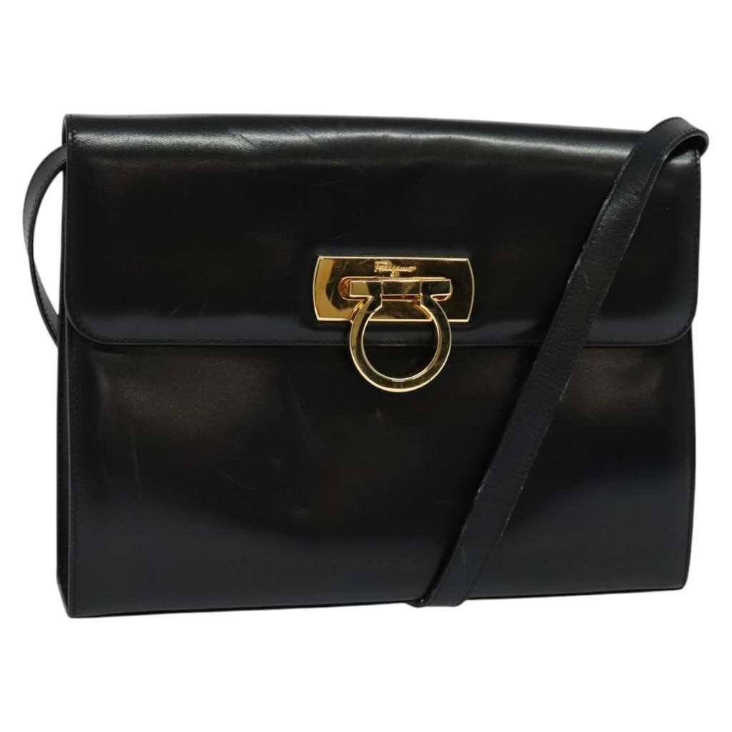 Salvatore Ferragamo Gancini Shoulder Bag Black Medium Leathe