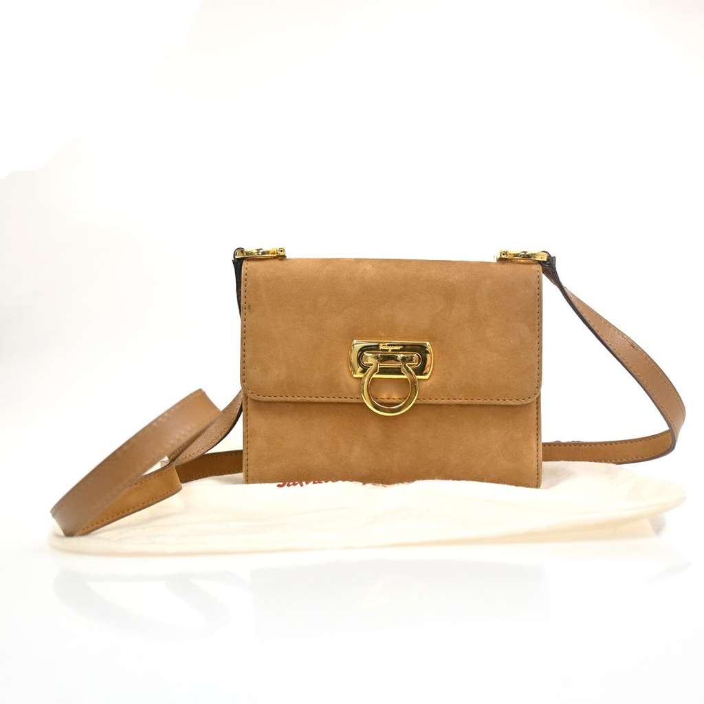 Salvatore Ferragamo Gancini Shoulder Bag Brown Mini Suede