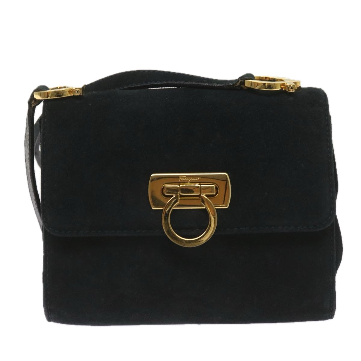 Salvatore Ferragamo Gancini Shoulder Bag Black Mini Suede