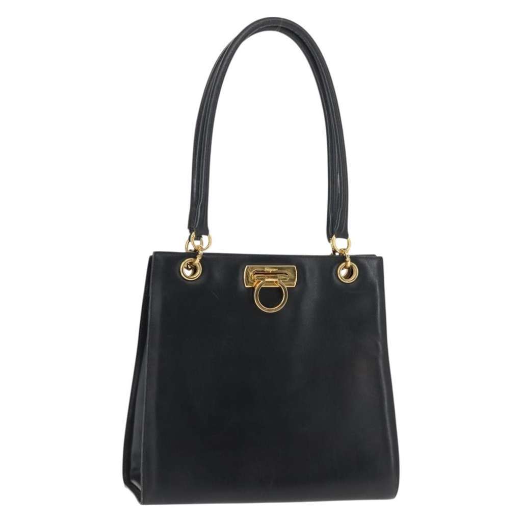 Salvatore Ferragamo Gancini Shoulder Bag Navy Large Leather