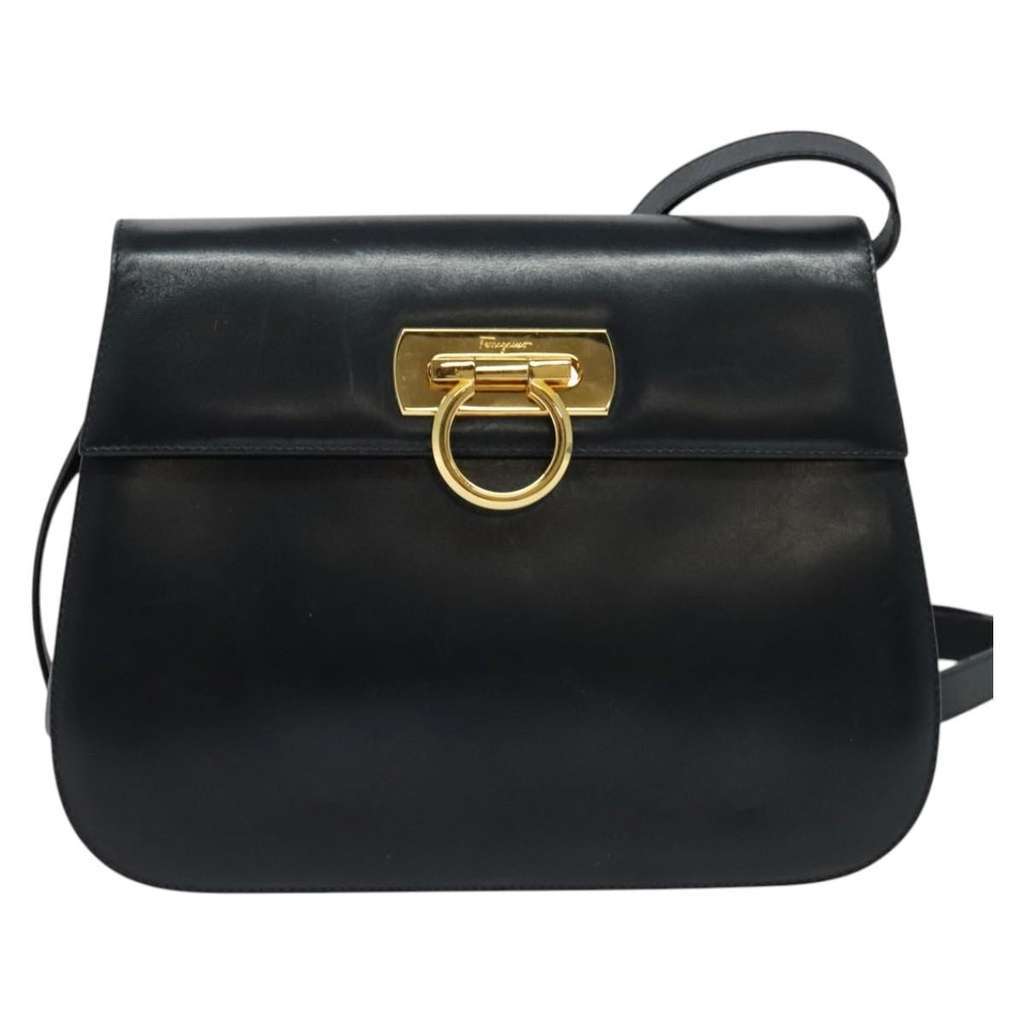 Salvatore Ferragamo Gancini Shoulder Bag Navy Medium Leather