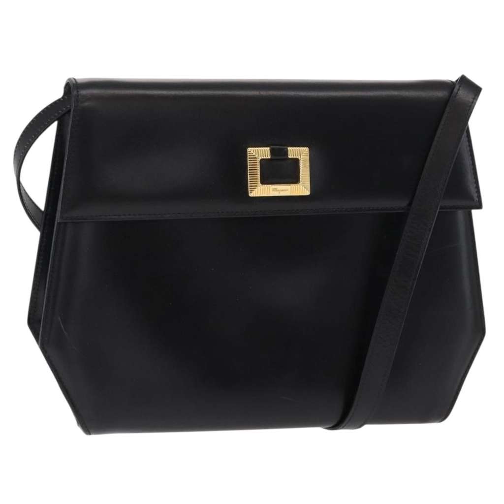 Salvatore Ferragamo Gancini Shoulder Bag Black Medium Leathe